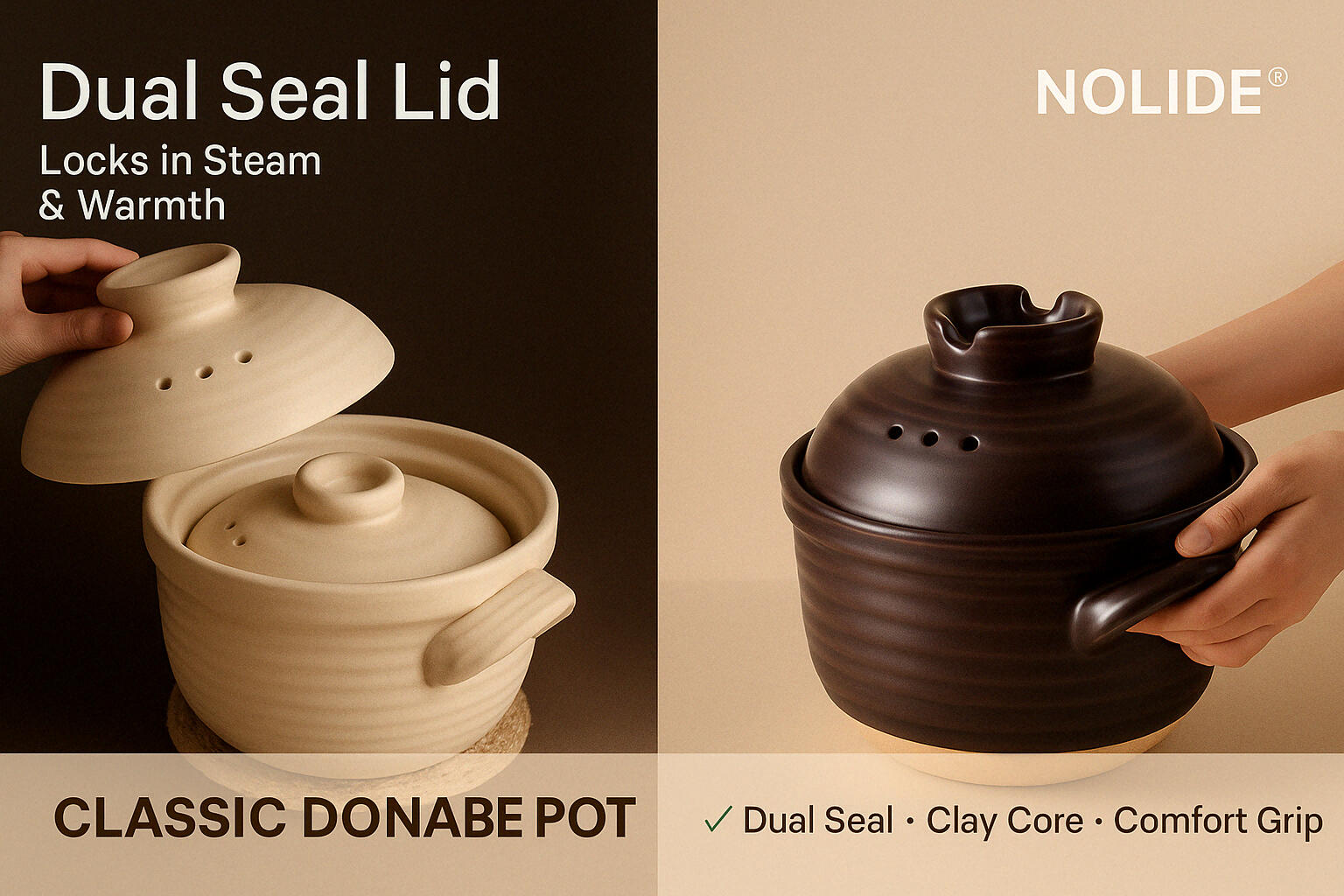 Our dual-seal donabe locks in steam and flavor, blending modern comfort with age-old clay craftsmanship.